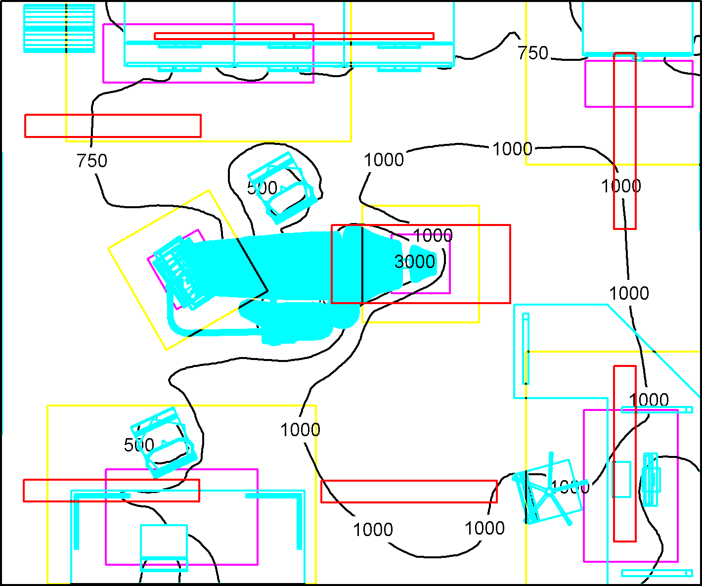 █ vybavení ordinace █ svítidla █ místa zrakových úkolů █ okolí úkolů ░ pozadím úkolů je celá ordinace